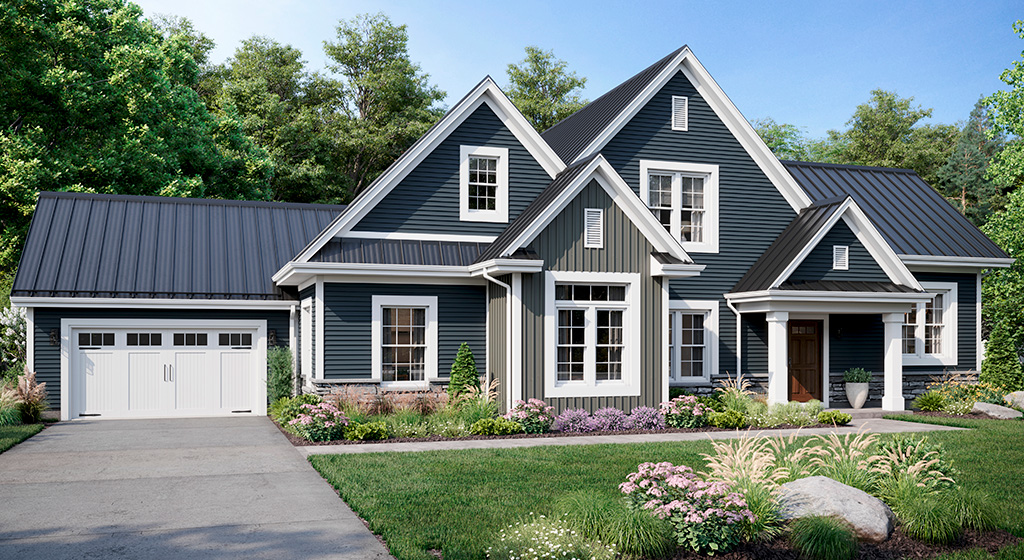 The popular vertical siding style provides a modern touch and a dramatic sense of height when used on the home’s entire exterior – or use as an accent to highlight architectural features including entryways, gables, dormers and more.